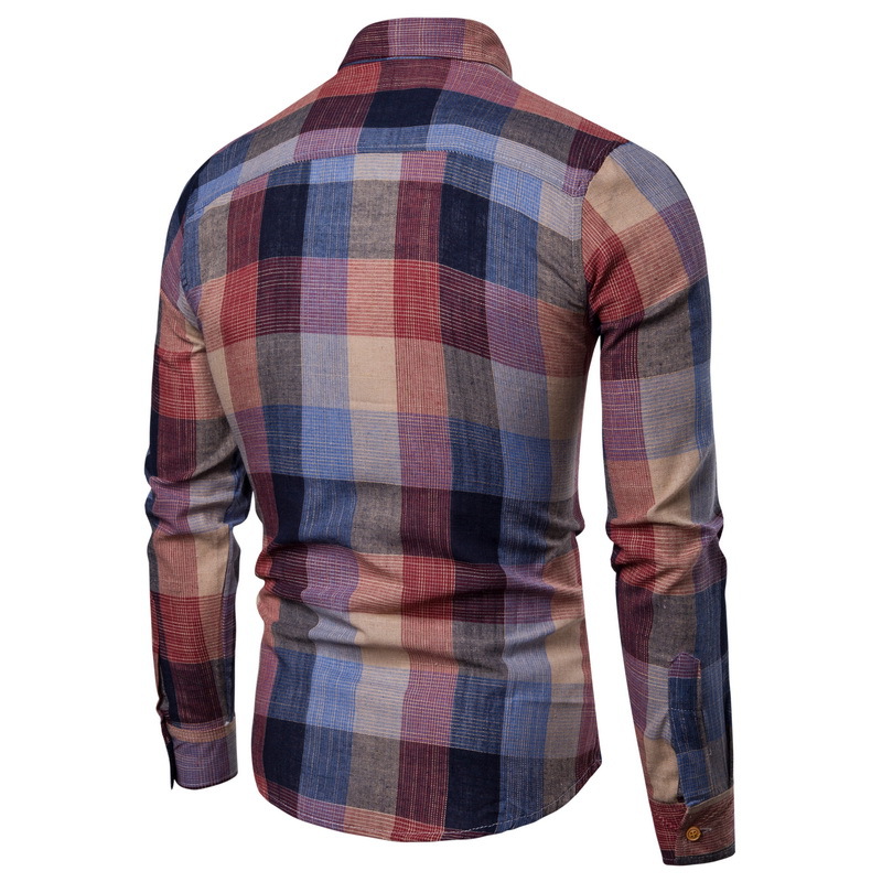Foreign Trade Spring and Autumn New Men’s Slim-fit Color Gradient Classic Plaid Long-sleeved Shirt Casual Youth Fashion